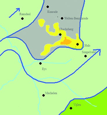 De tijd dat de West-Maas wordt geboren. Deze stroomde globaal in de lijn Margraten-Landgraaf.